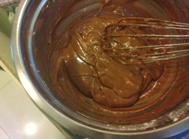 3. Add rest of ingredients to the dry ingredients and beat on low-speed until combined. (I don't have a mixer so I have lots of bonding time with my whisk (smiley))