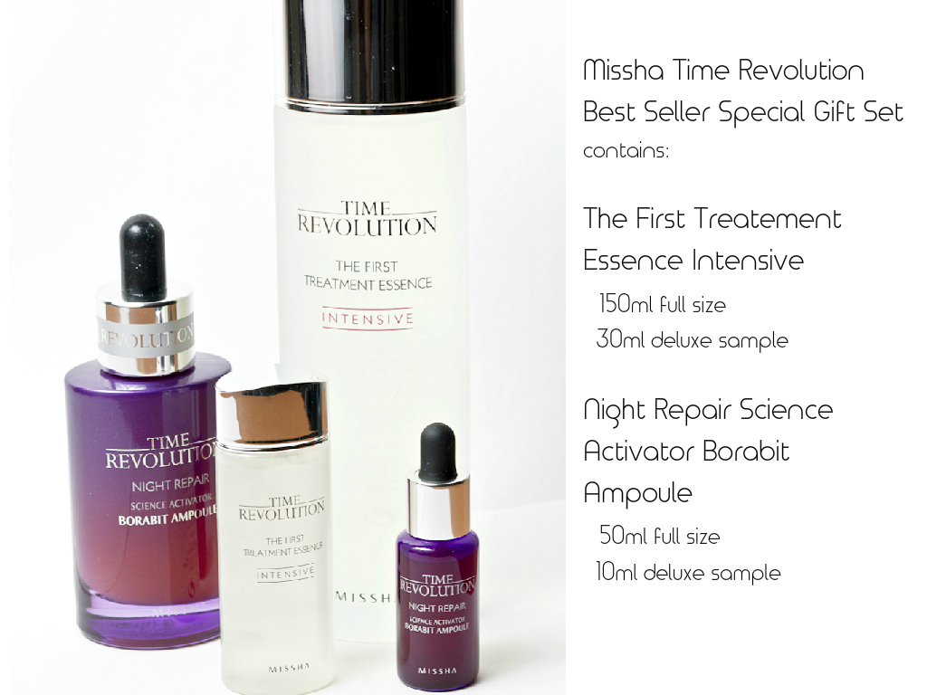 You can read here how much I love the Time Revolution Night Repair Ampoule so I'm very keen on trying out the reformulated slash better version of it. Missha decided to add "Borabit" and "Intensive" to their best seller products so their customers can have a tongue twister moment haha. The mini versions are freebies that I'm happy to have since they are great for travelling.