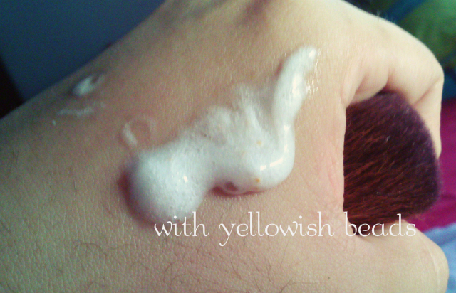 Very promising right? So I bought this in an instant even if it's out of my budget. So, I started using this foam cleanser around June by just taking a small amount (it easily creates foam so no need use a lot) making sure that the yellow beads are included then rub it in my hands then I gently massage it on my face. The yellow beads pops into smaller-tiny pieces and act as a gentle scrub. Then I wash it off with tepid water (although the instruction said with warm water). I feel that my face is totally cleansed (as in squeaky clean) with this but since I have dry skin, I also feel the need to put my face essence immediately so I think this is best for those with oily to normal skin type.